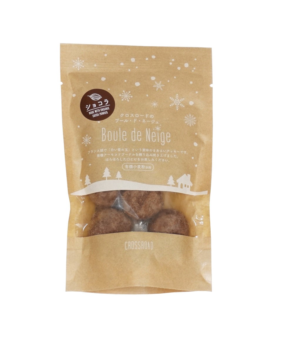 有機小麦粉と有機アーモンドプードルをベースに低温でじっくり焼き上げたクッキー生地に、有機粉糖を2度トッピングして作りました。バターと有機ココアパウダーと天然素材のバニラ香料の風味が広がり、口の中でサクサクほろほろと溶けていきます。