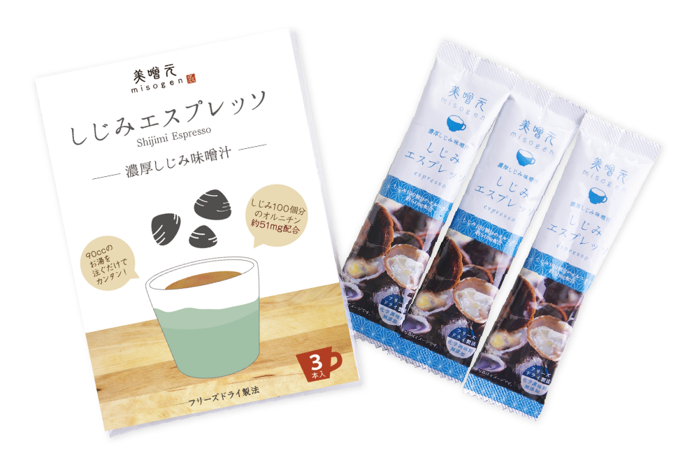 具無しタイプの【しじみエスプレッソ】はスティックタイプの濃縮しじみ味噌汁です。