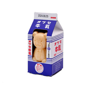 小布施で永く愛されている「オブセ牛乳」と、「栗庵風味堂」のコラボレーションで生まれた、かわいいくまさんもなかです。