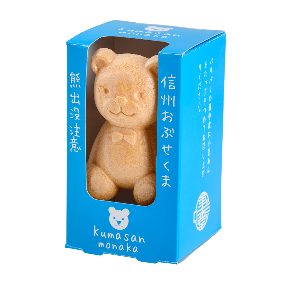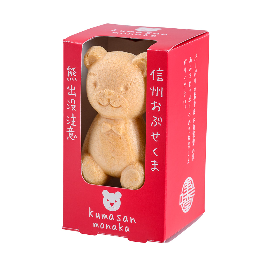 小布施で永く愛されている「オブセ牛乳」と、「栗庵風味堂」のコラボレーションで生まれた、かわいいくまさんもなかです。