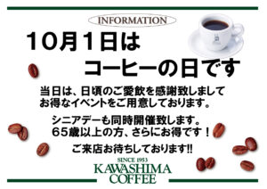 川合店では、コーヒーの日にちなんで、お得なサービスをご用意しています。