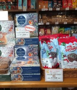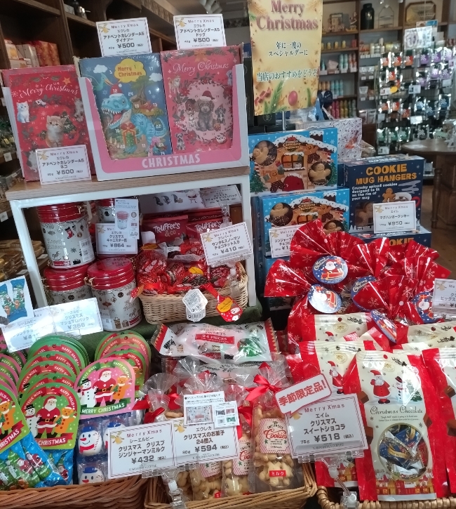 店頭には、その他、クリスマス商品や季節限定のお菓子が目白押しに並んでいます。